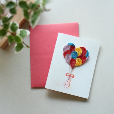 模様を描く「ペーパークイリング」という技術でできたカード です。
