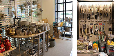 野菜の苗や個性豊かな多肉植物、植物を入れるカバーなどを取り揃えて、フェア期間中はハサミや手袋などが20%オフになっています。商品入れ替えのため50%オフのアウトレットセールも同時開催中。特に大きなプランターがお買い得です。