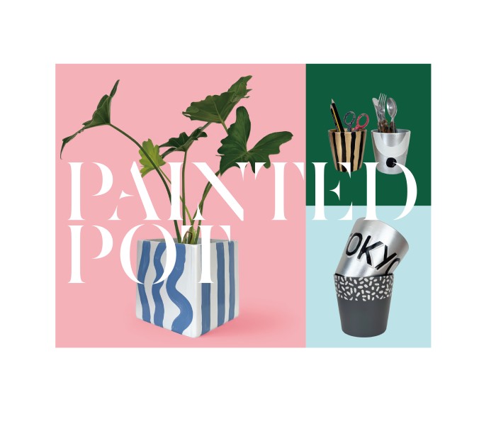 11月8日(土)には、「upstairs outdoor living」にてご購入いただいたポット(鉢カバー)に、オリジナルのペイントができるポットペイントワークショップを実施します。本ワークショップでは、Bob Foundationが特別に用意したイニシャルの型抜きやモチーフを使って、お部屋に飾るオリジナルポットが制作できます。
