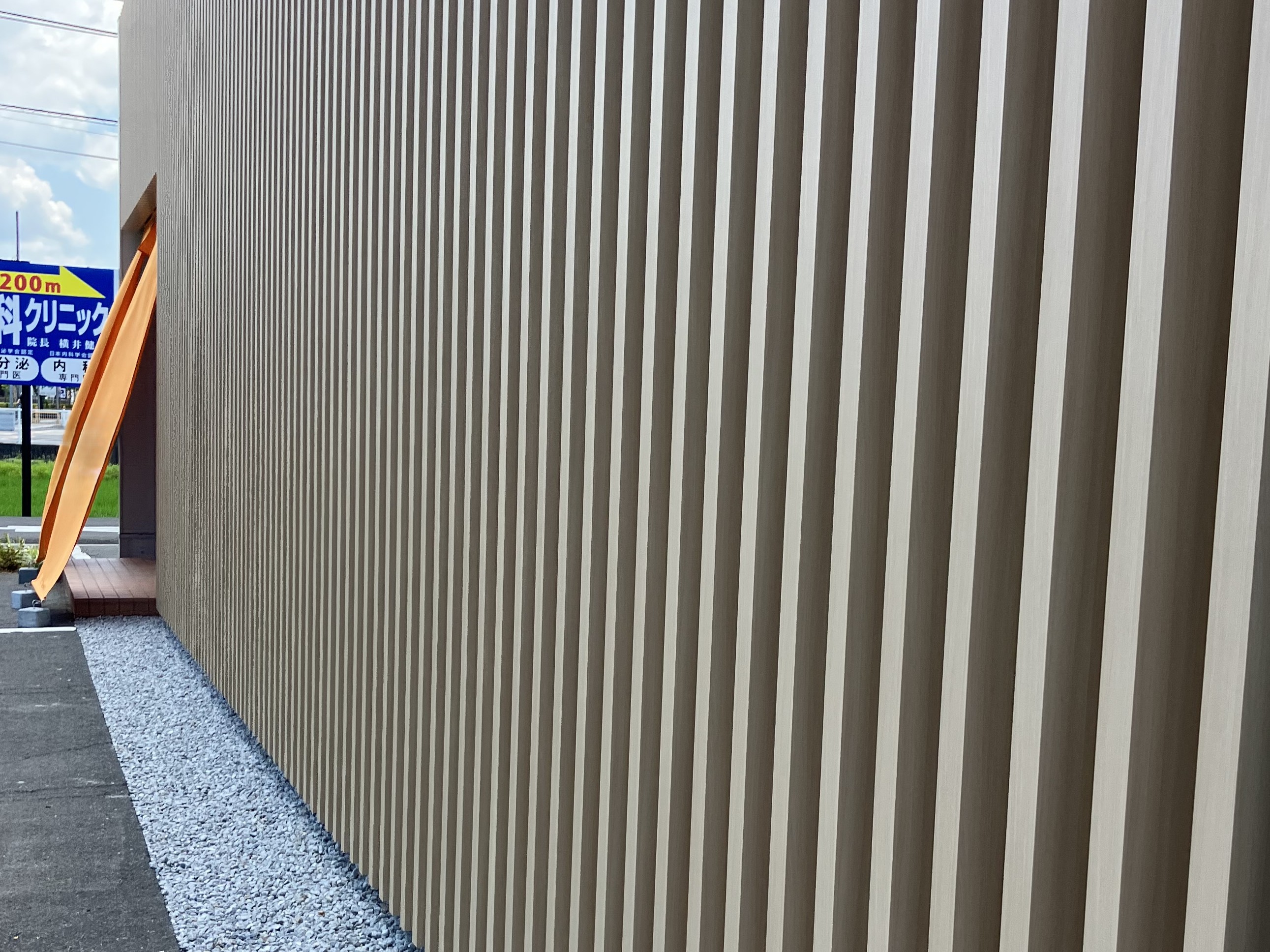 今回の仕事では図面のやり取りに手間がかかりました。また当初予定になかった裏面化粧材の手配など途中で追加があり大変でしたが、完成した洋風の高級レストランのような外観はきっとお客様に気に入っていただけていると確信しております。