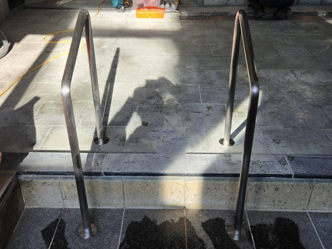 千葉県内にある公営のレジャー施設内の浴室にステンレス製の手摺をオーダーメイドで製作し納品させていただきました。